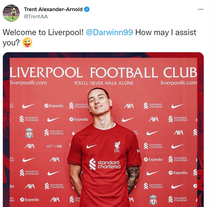Trent-Alexander Arnold welcomes his new teammate with a cheeky message on Twitter